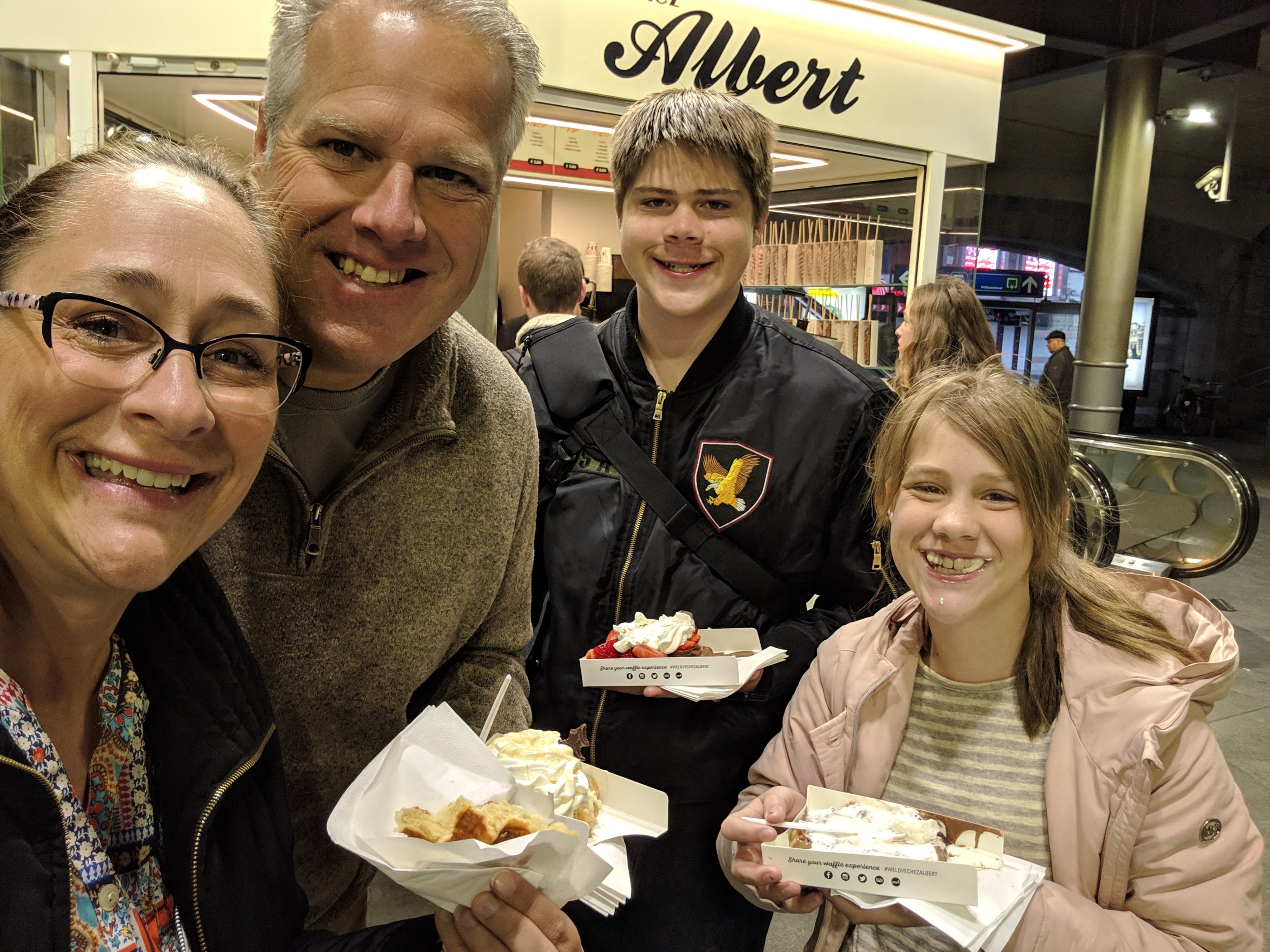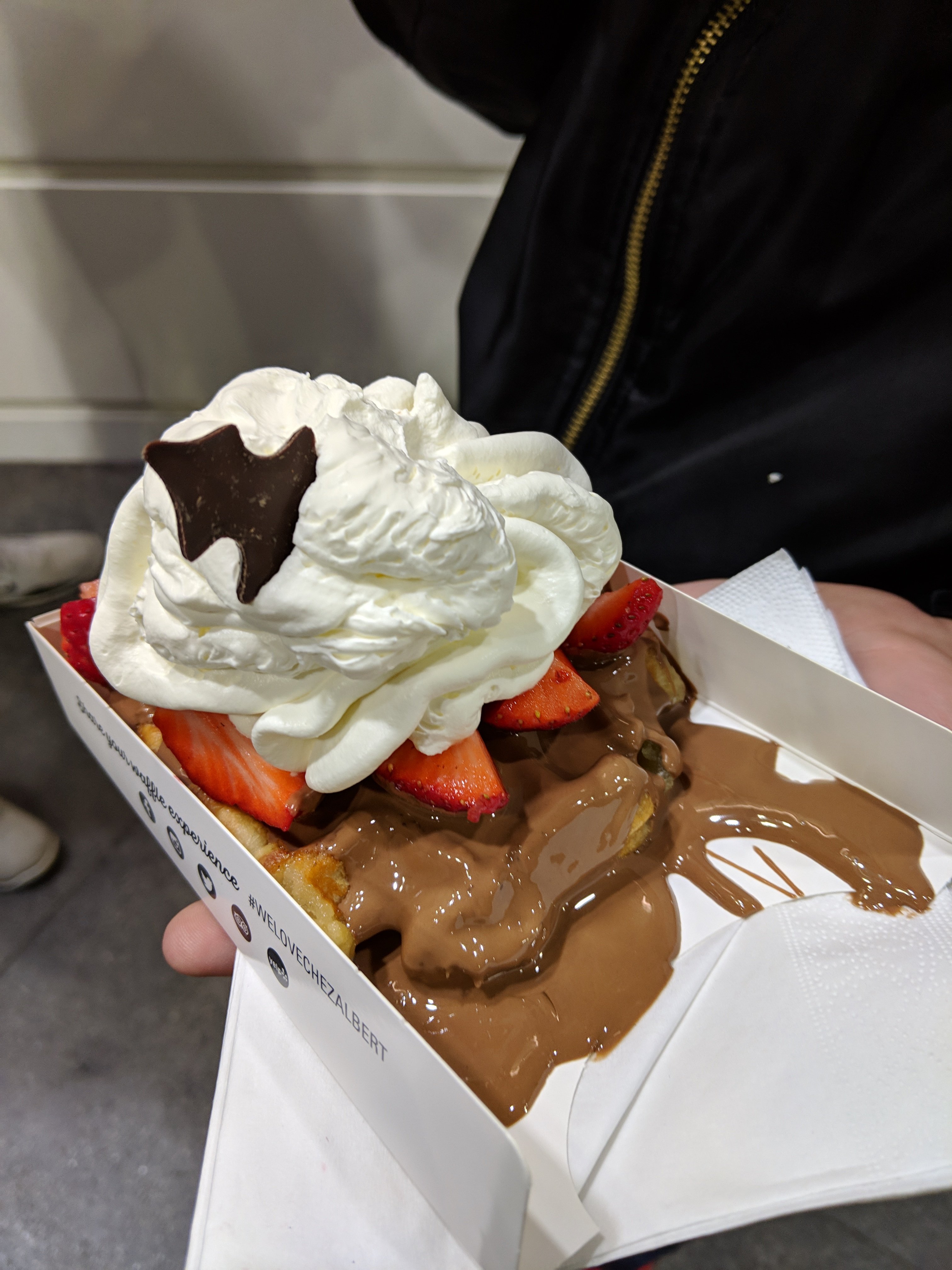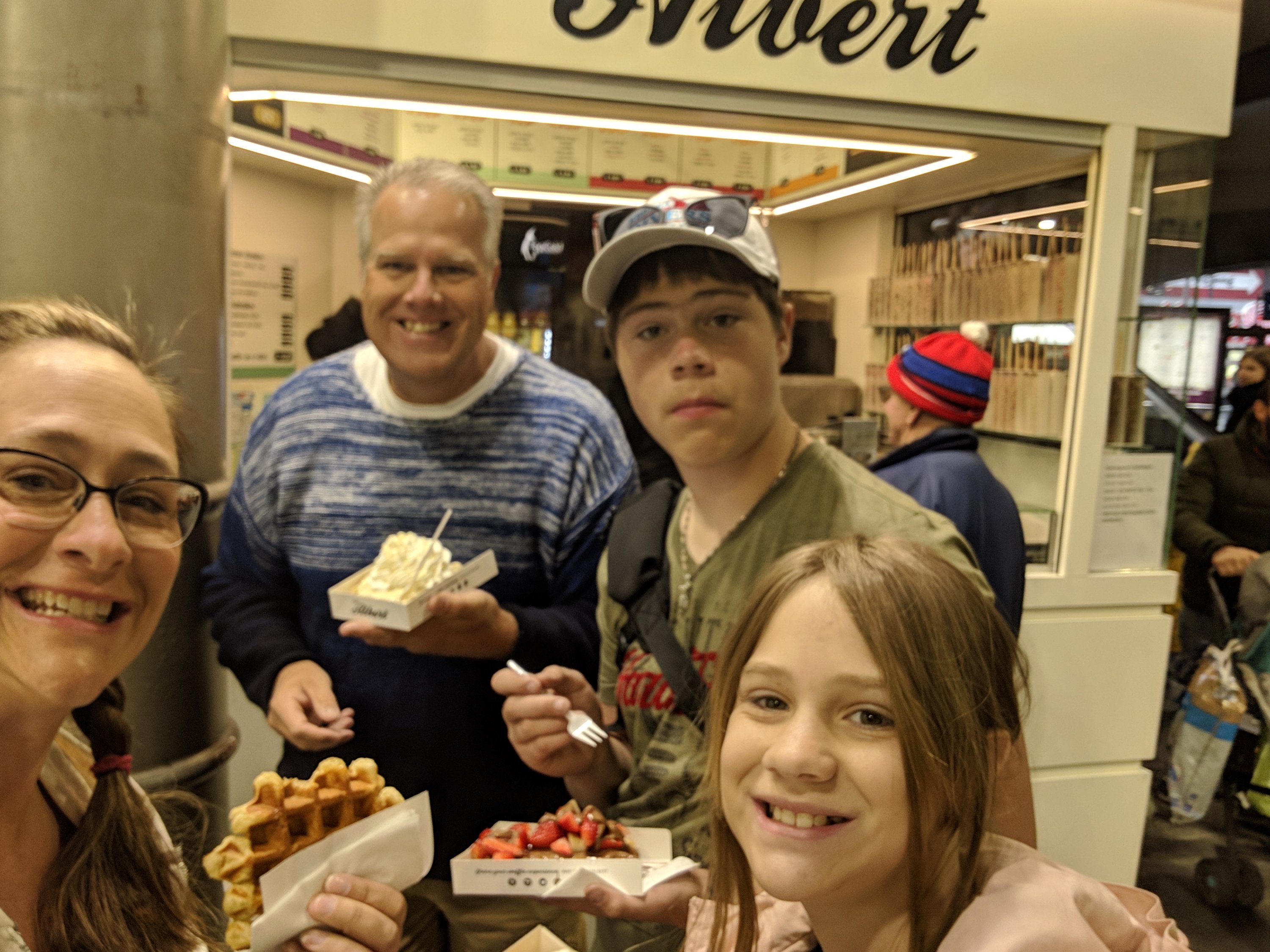 Seriously, we had some of the best food in Belgium. Our kids were eager to awake every morning, and head to the train station because we would stop at the waffle stand and get a fresh made Belgian Waffle. I am ruined for life. I cant’s eat waffles in America ever again. And the french fries… They are so good. The chocolate croissants. Oh and the frikandellen. It’s like a velvety sausage that is deep fried and taste so good.