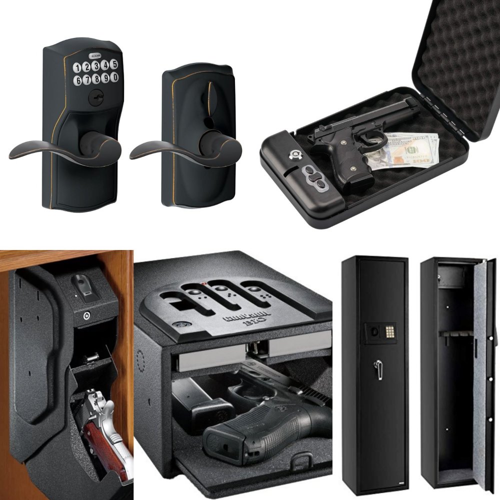 There are many options for keeping your firearm locked up, but ready when seconds count. There are the large guns safes. In an emergency situation this is not the best option. An intruder will hear you trying to get into it. Most have a 9 digit key code to punch in. The smaller bio metric safe is a great option. Many of these can even be purchased on Amazon.